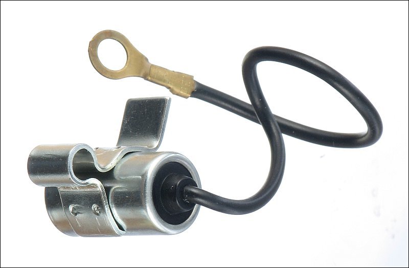 ![]() The photos below show what the breaker points and condenser look like. The 'condenser' is simply a high voltage capacitor. These rarely fail but when they do, you will see an increased burning of the breaker point's electrical contacts. If the contacts for the breaker points burn, the breaker points need to be replaced. They can sometimes be cleaned but they typically won't continue to work well if they were badly damaged. If they're just slightly dirty, you can clean them by inserting a piece of cardboard or heavy paper stock between them and working it back and forth. Using a bit of light oil (WD-40 or similar) can help with the cleaning.